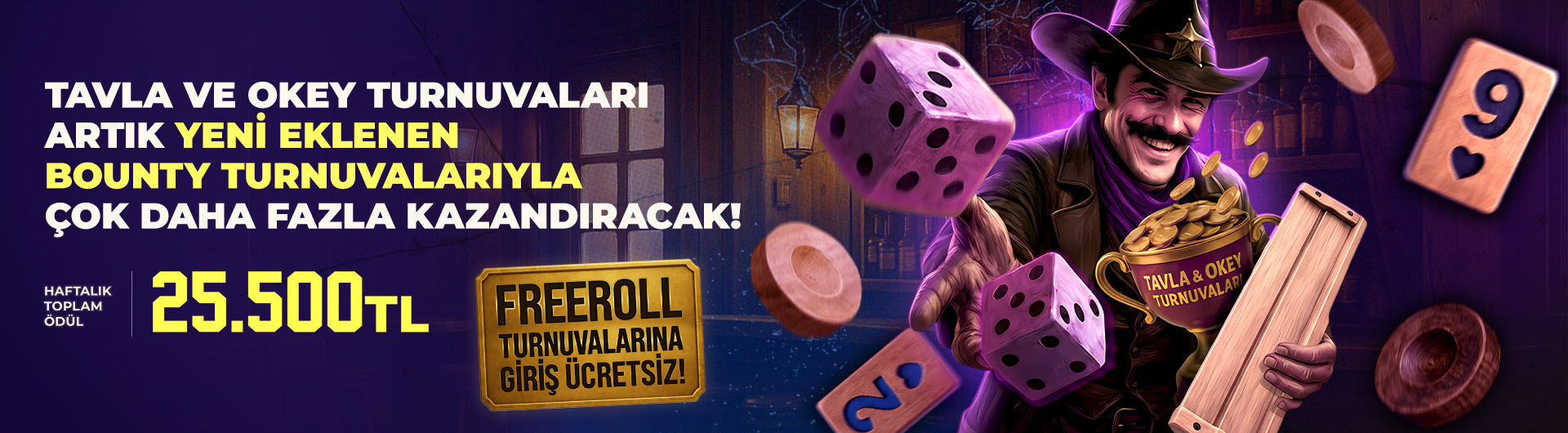 Bounty Turnuvası TAVLA Ödül: 1.000 TL Buy-In: 10 TL |